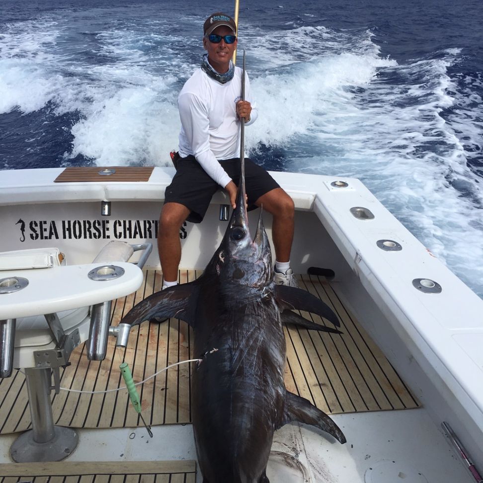 Ready for some serious offshore action? Hop aboard with Sea Horse Deep Sea Fishing for a full day of chasing swordfish in the crystal-clear waters off Islamorada. This isn't your average fishing trip – we're talking about battling one of the ocean's most prized catches. Our crew knows these waters like the back of their hand, and they're itching to put you on the fish. Whether you're a seasoned pro or it's your first time holding a rod, we've got you covered. And hey, while we're out there, we might just run into some mahi-mahi, wahoo, or even sharks. It's the Keys, after all – anything can happen!